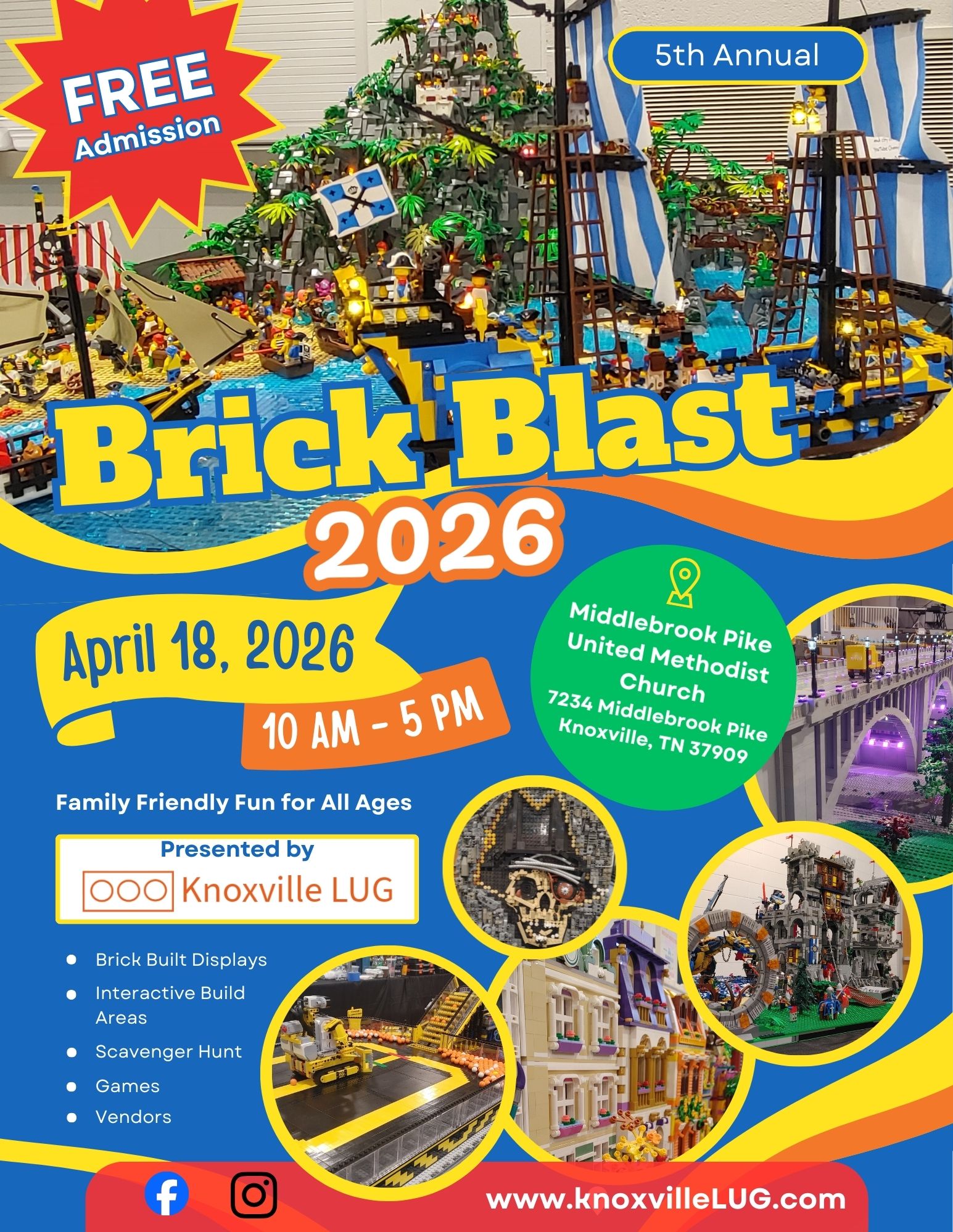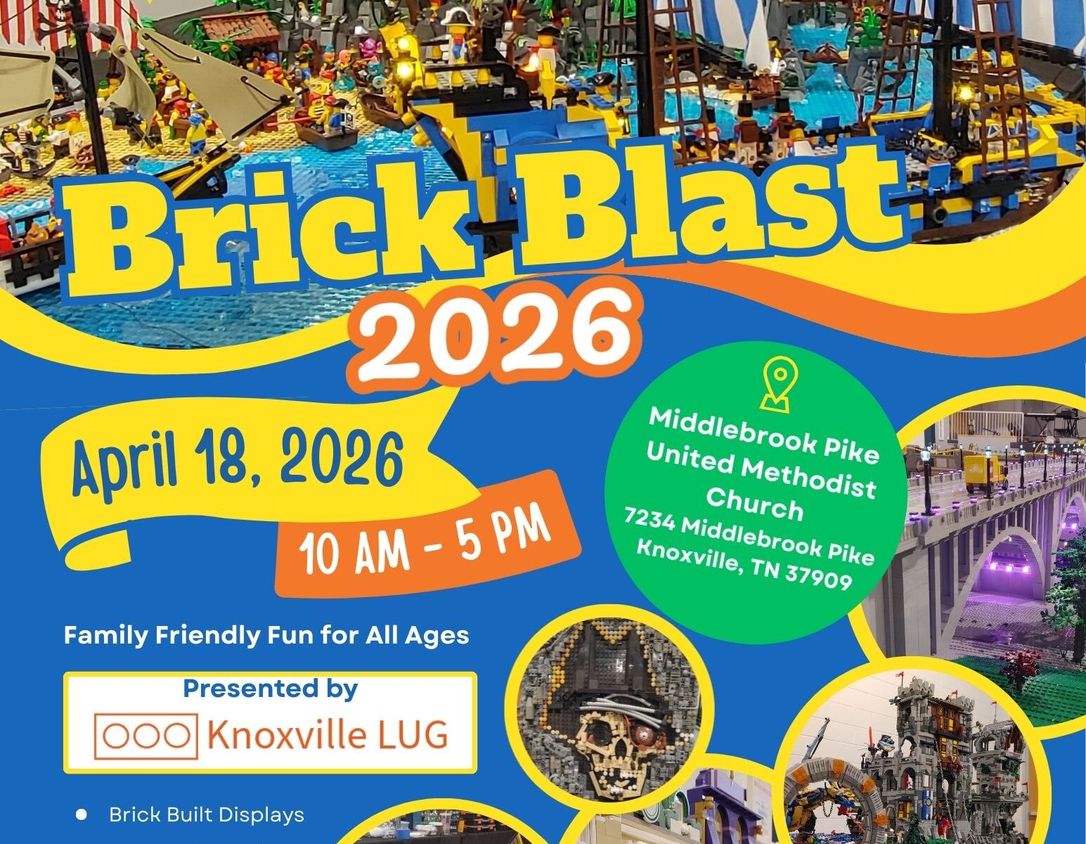 Join us for a fun Saturday at Brick Blast on April 18, 2026 at Middlebrook Pike United Methodist Church.